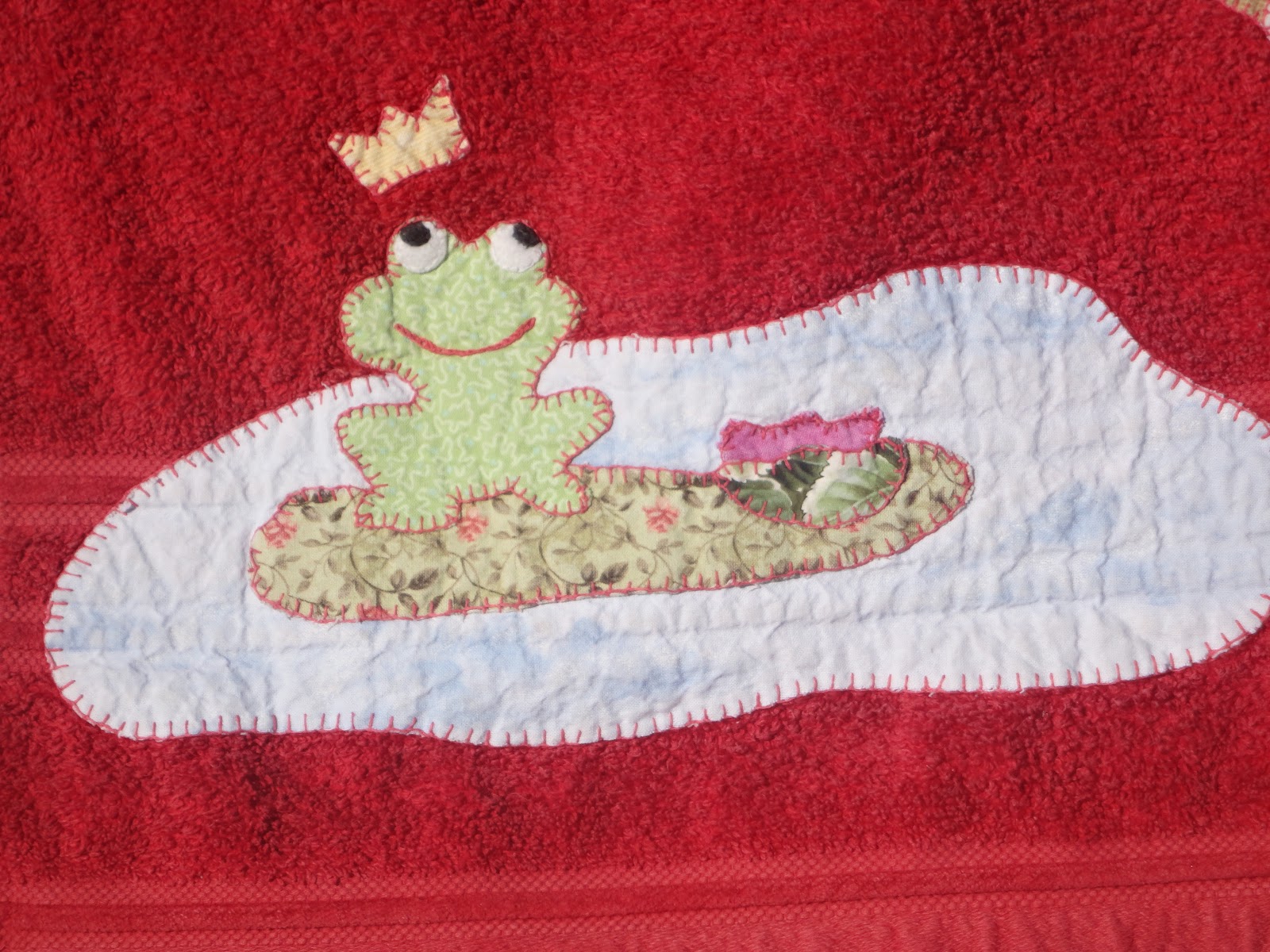Este fue el primer trabajo que hice (junto con otra toalla de la que aun no tengo las fotos),es una toalla que hice con todo mi cariño para mi hija mediana. La toalla es roja porque es su color favorito y aunque al principio no le gustó mucho, la verdad es que ahora le encanta.